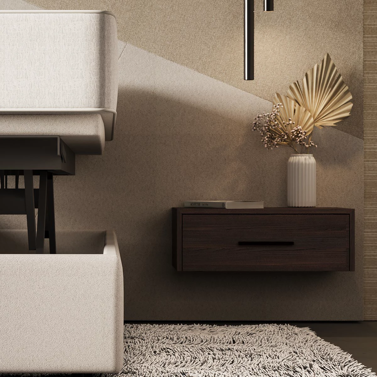 Daarnaast bieden we een ruime keuze in nachtkastjes, zowel op de vloer als zwevend, inclusief ingebouwde verlichting, bedlampen en leeslicht. Het model Ferrara vormt zo een stijlvolle en praktische basis, die u geheel naar eigen wens kunt uitbreiden.