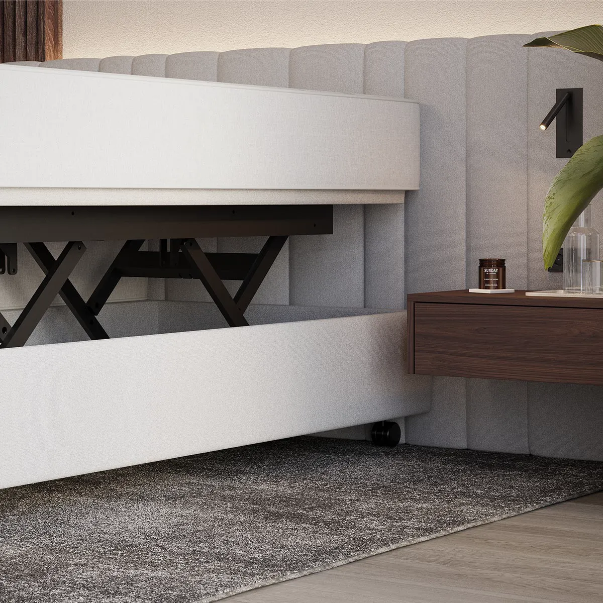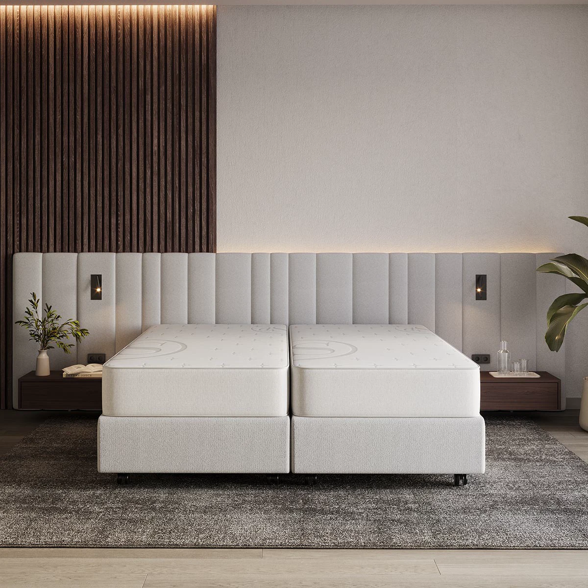 Deze optie wordt vaak gekozen als aanvulling op de standaard hoog-laag zijde van het bed. Bij deze populaire hybride uitvoering wordt de andere bedzijde uitgerust met een elektrisch verstelbaar hoofd- en voeteinde. Uitgerust met krachtige 2x6.500N-motor en draadloze bediening, waarmee het hoofd- en voeteneinde afzonderlijk kan worden versteld. Meer over de hybride uitvoering.