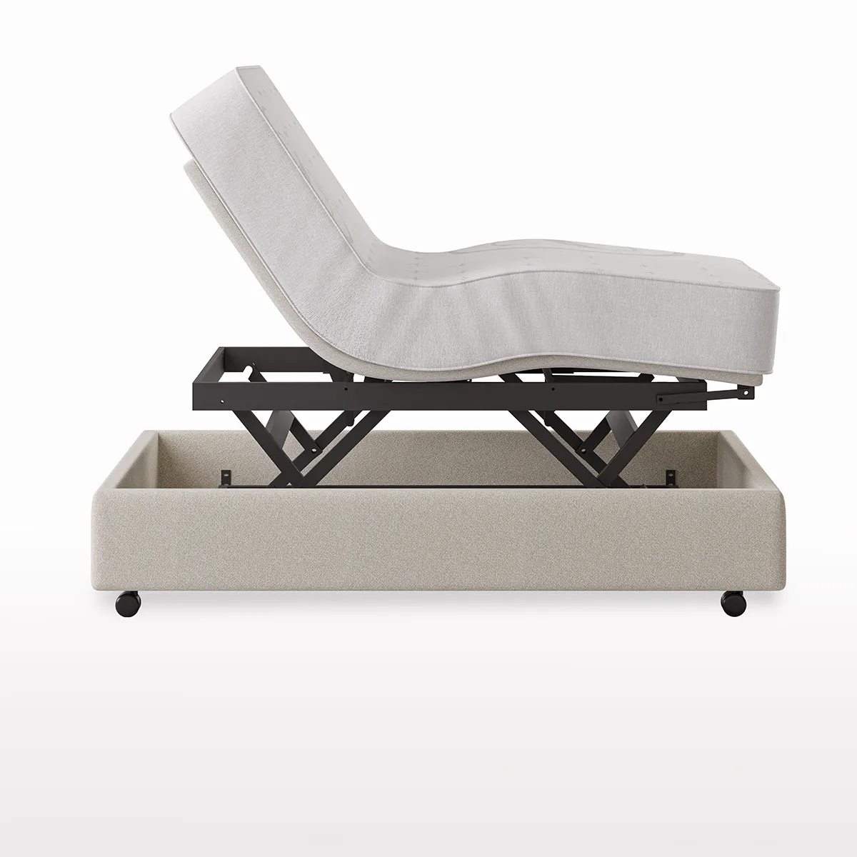 Hoog laag bed inclusief elektrisch verstelbaar hoofd- en voeteinde.